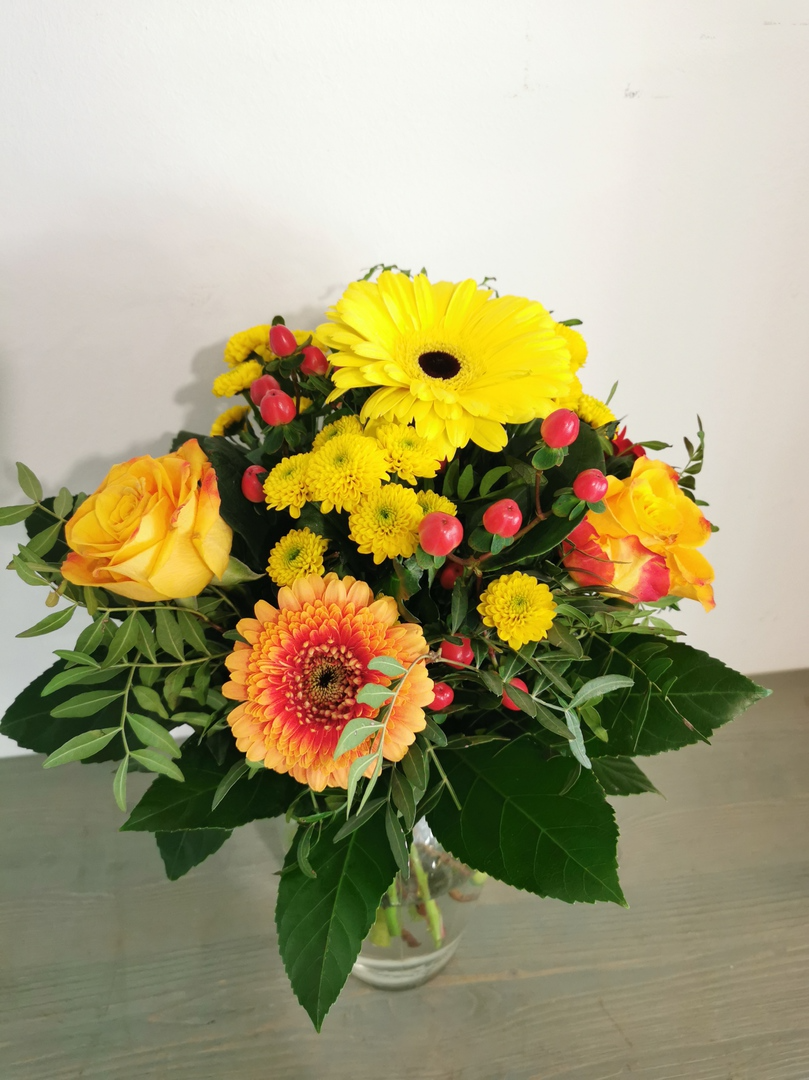 Leuchtende Farben bringen gute Laune, Freude und Aufmunterung. Diesen Strauß kannst du gut zum Geburtstag, oder auch zur Aufmunterung schenken.